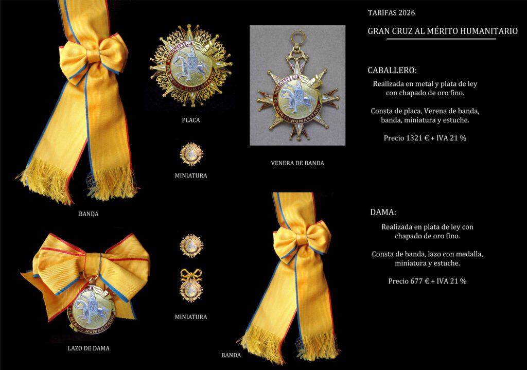 Asimismo, la Gran Cruz para dama está compuesta por lazo, banda y miniatura.